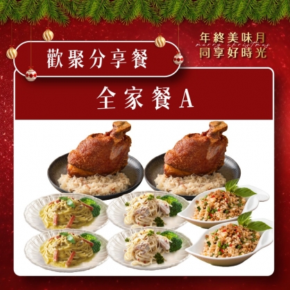 【脆皮德國豬腳2入+青醬海瓜子燻肉義大利麵2入+奶油嫩雞蕈菇義大利麵2入+泰式打拋豬肉飯2入】