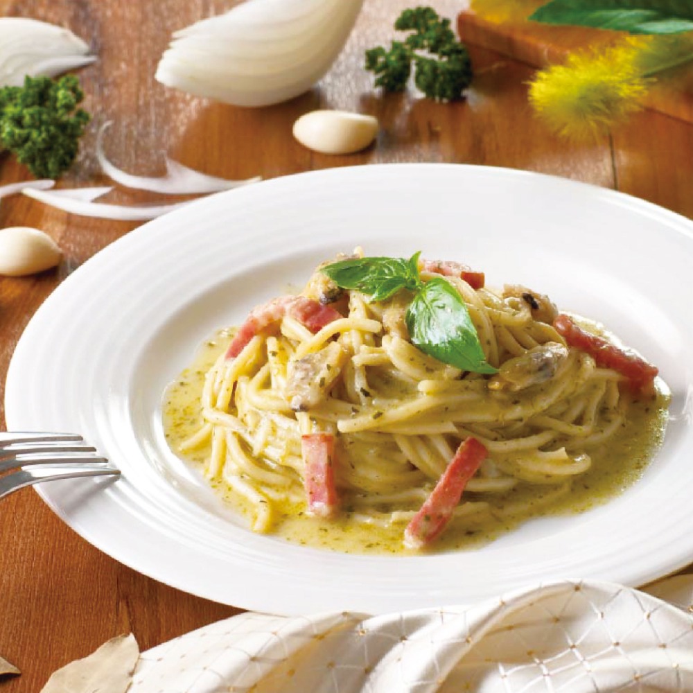▪️青醬海瓜子燻肉義大利麵 : 地中海義式青醬!嚴選羅勒青醬融合帕馬森起司,濃郁香氣環繞每條義大利麵,滑順濃醇,加入鮮美海瓜子與鹹香培根,鮮味層次豐富,喚醒味蕾的地中海想像。