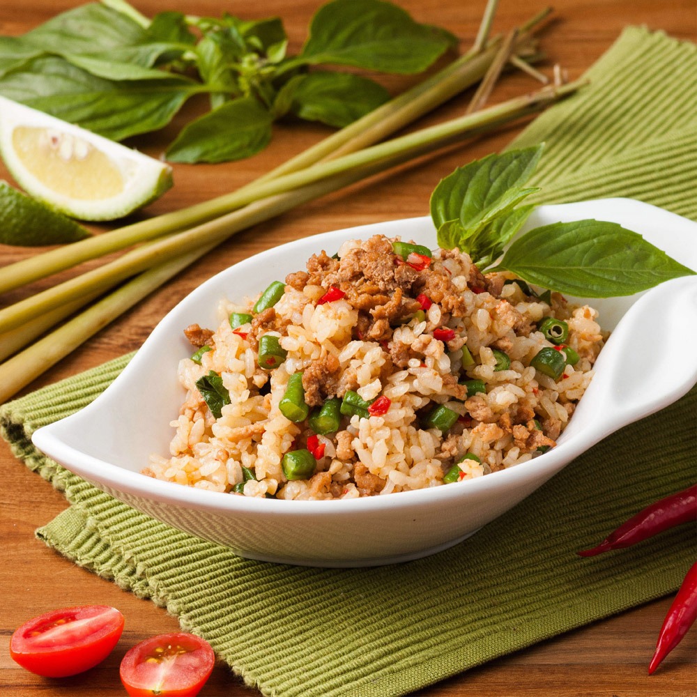 ▪️泰式打拋豬肉飯 : 香辣開胃的經典美食!嚴選台灣優質豬肉,搭配多種泰式辛香料大火快炒,酸、辣、鹹香層層交織,完美呈現經典風味。