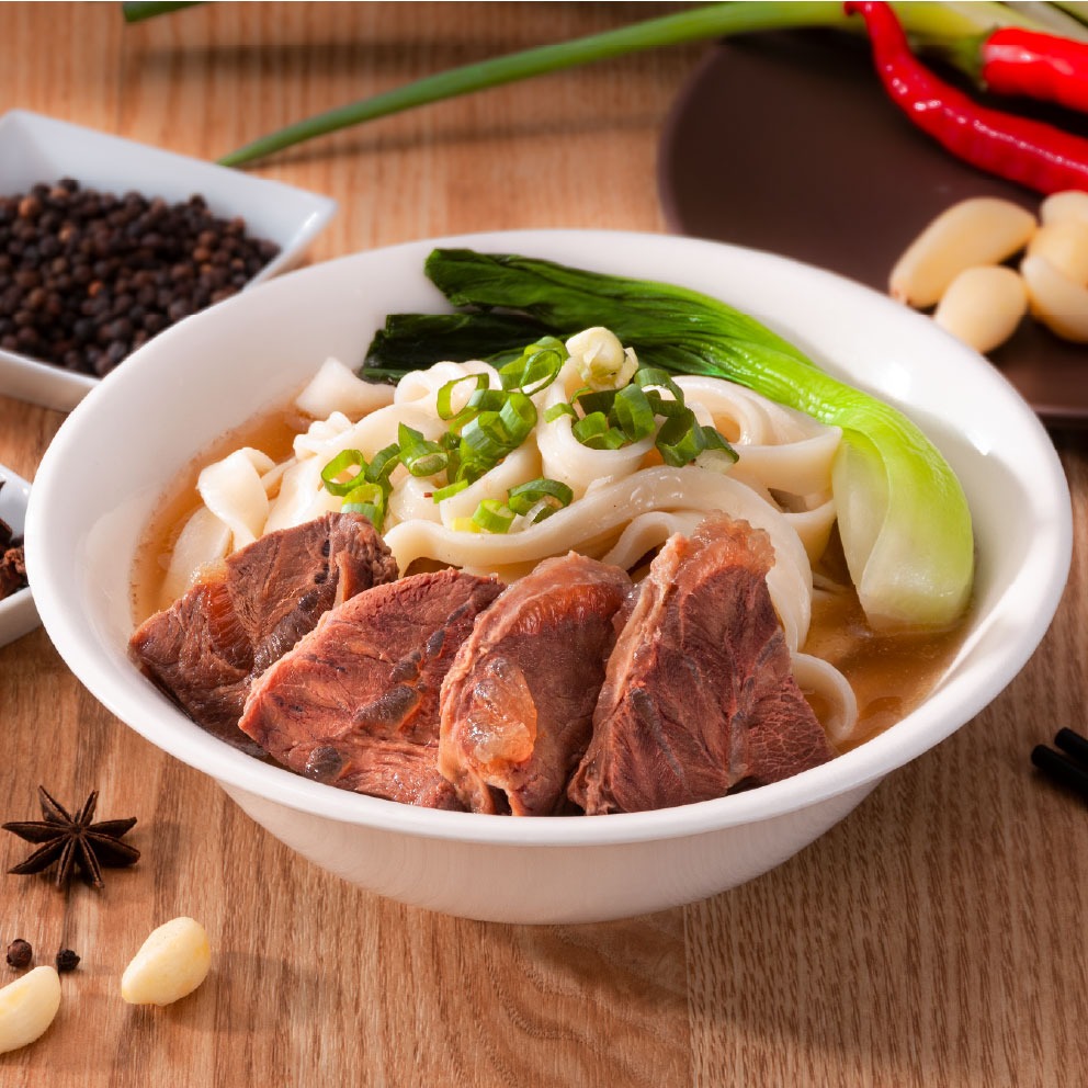 ▪️紅燒牛肉麵 : 享受頂級美味!嚴選上等牛腱,經長時低溫細火燉煮,湯頭以牛骨與十餘種珍貴香料匠心熬製,佐以特製刀削麵,口感Q彈滑順,每一口皆為講究生活品味者打造的高端饗宴。