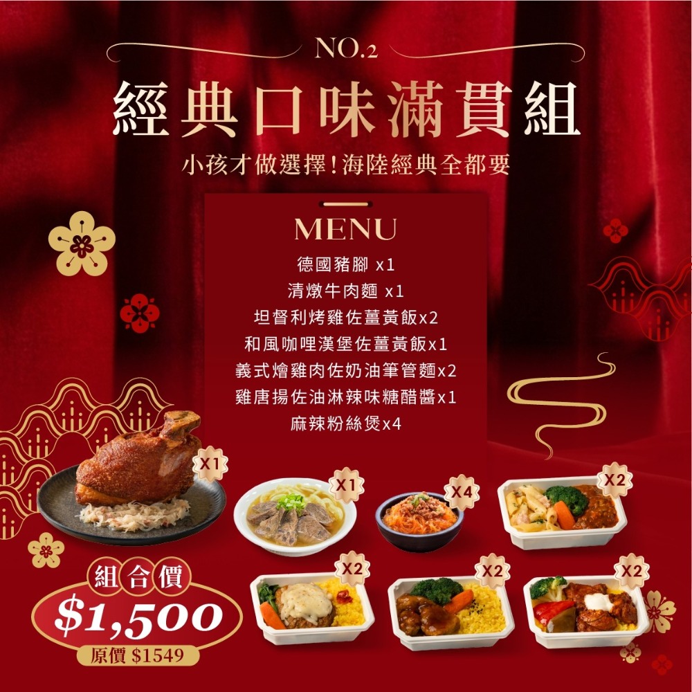 【脆皮德國豬腳X1+清燉牛肉麵X1+坦督利烤雞佐薑黃飯X2+和風咖哩漢堡佐薑黃飯X1+義式燴雞肉佐奶油筆管麵X2+雞唐揚佐油淋辣味糖醋醬X1+麻辣粉絲煲X4】