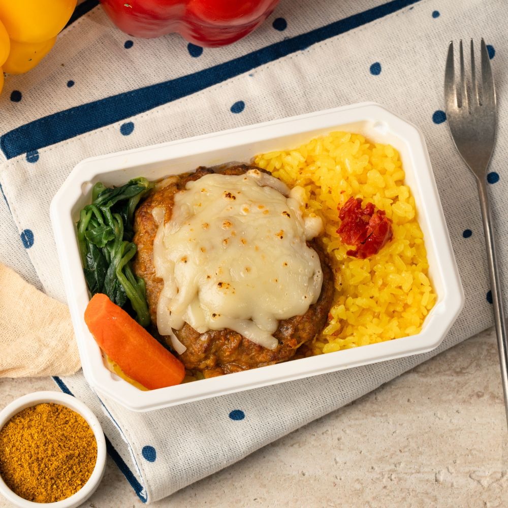 ▪️和風咖哩漢堡佐薑黃飯: 濃郁咖哩香,包裹職人手作溫度
